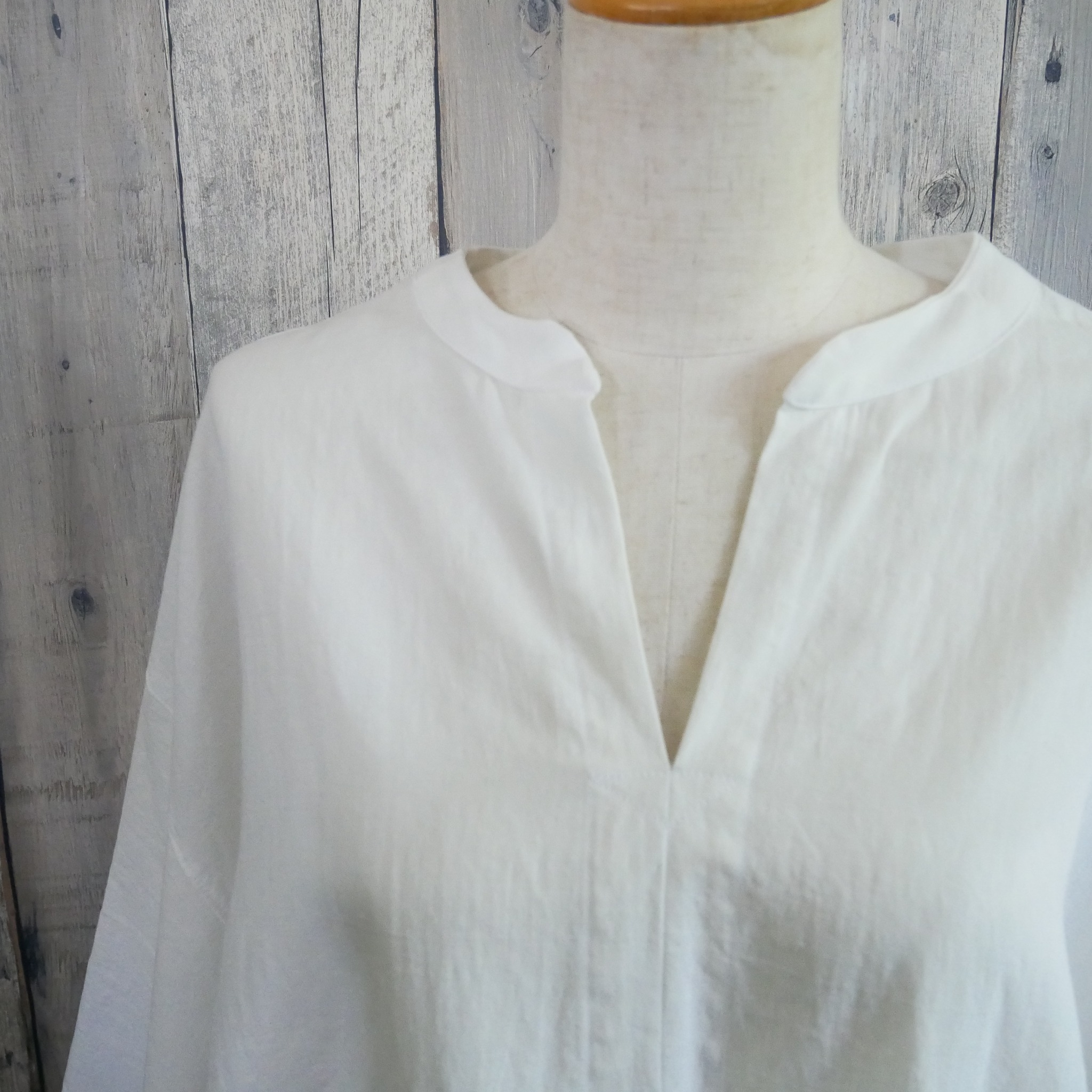 今日、紹介するのは前開きブラウス。首元がしっかり開いていて、首元や顔回りがすっきり見えるブラウスです。